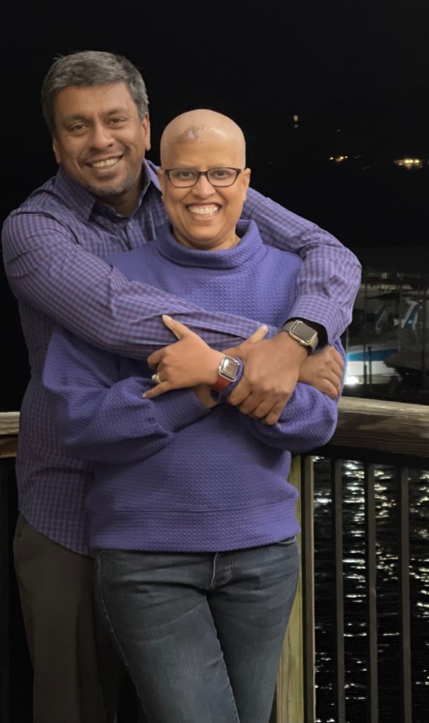 I am staying on top of my health – meeting multiple doctors of different specialties to manage my overall health. I am also actively scanning for medical advancements/treatments/clinical trials aligned to my condition to see if I can benefit. My looks are compromised – with no hair, eyebrows, or eyelashes. I am one of those women not affected by it, and I say this with a lot of pride, but I empathize with others who do not. There is a constant reminder to myself – that my family and friends enjoy my company because of who I am.